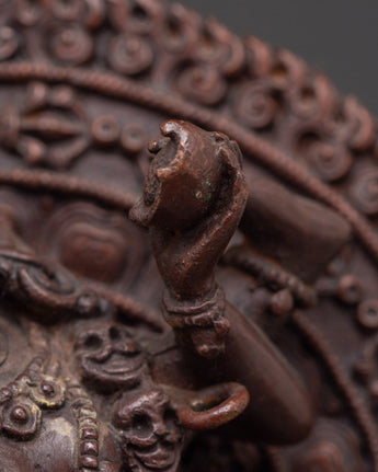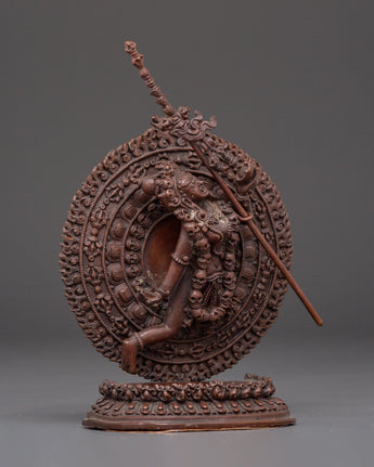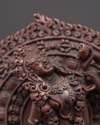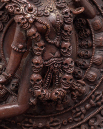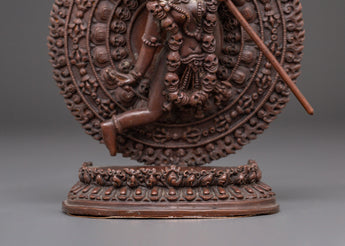 Expert Tibetan craftsmanship brings this deity to life with elaborate carvings that capture Vajrayogini's bold countenance and symbolic embellishments. The oxidized copper finish highlights the subtle details, emphasizing her divine energy and distinct presence. This piece is great for spiritual practitioners, Buddhist art collectors, or anybody looking for a powerful spiritual emblem to help with their meditation or ritual activities. This Flying Vajrayogini Statue is an excellent choice for anybody looking for Tibetan Buddhist statues, meditation altar decor, tantric deity sculptures, spiritual gifts, or handcrafted copper art. This statue, whether presented on a holy altar or as a devotional centerpiece, embodies wisdom, compassion, and transformation in your spiritual environment. Add this magnificent piece to your collection and experience the profound teachings of Vajrayana Buddhism.