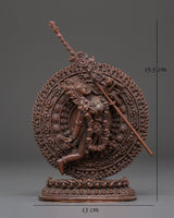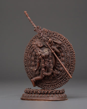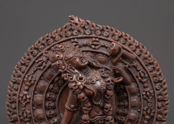 Embrace the transformational power of Tibetan Buddhist art with the Flying Vajrayogini Statue, a sacred image of one of Vajrayana Buddhism's most beloved female goddesses. This handcrafted sculpture stands 15.5 cm tall, 13 cm broad, and weighs 0.52 kg. It is made of oxidized copper body, which gives it a stunning depth and texture. Vajrayogini, represented in her dynamic flying pose, symbolizes ultimate wisdom, liberation, and spiritual awakening, making this statue an appropriate centerpiece for meditation rooms, temple altars, or personal shrines.