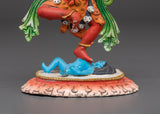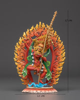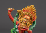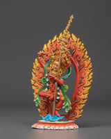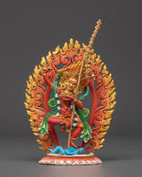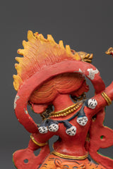 Dorje Phagmo is often depicted as a fierce protector and symbolizes the transformation of negative energy into wisdom. The gold plating represents the purity and enlightenment associated with her powerful presence, while the copper body brings stability and grounding. The acrylic colors add vibrancy and detail to the statue, highlighting her intricate features.