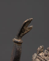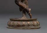 The statue, expertly cast from copper with a rich antique finish, measures 23 cm in height, 8.5 cm in width, and weighs 0.94 kg. The intricate details on her crown, jewelry, and flowing garments demonstrate skilled craftsmanship rooted in Himalayan artistic traditions.