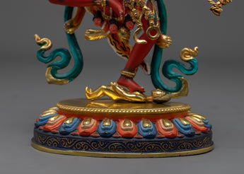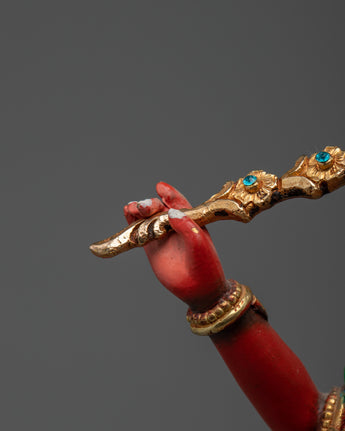 Kurkulla, a revered deity in Tibetan Buddhism, embodies abundance, wisdom, and protection, and this statue captures her essence with intricate craftsmanship and vibrant colors. The combination of gold plating and acrylic color brings out the divine energy and beauty of this statue, making it not just a spiritual piece but also a work of art.
