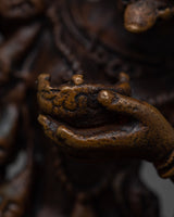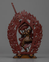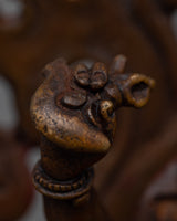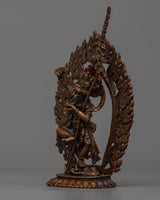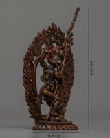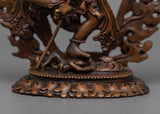 The Machine Made Dakini Singhamukha Statue, which was lovingly created using current machining methods on an oxidized copper body, represents the strong and divine feminine force of Singhamukha. This statue, which stands 15.5 cm tall, embodies Singhamukha's knowledge, kindness, and staunch defense. With its elegant oxidized copper finish and fine craftsmanship, it is a striking symbol of spiritual elegance and strength.