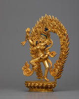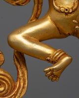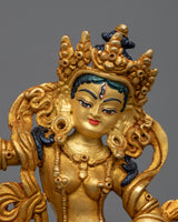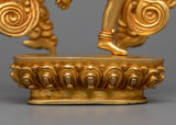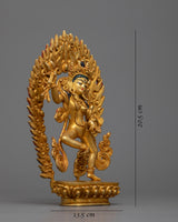 The Machine Made 20.5-cm-tall Machig Labdron Statue captures the enlightened spirit of the esteemed Tibetan yogini. This statue perfectly embodies Machig Labdron's compassionate knowledge, with its superb 24k gold plating and finely detailed construction on a copper body.