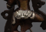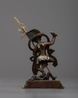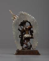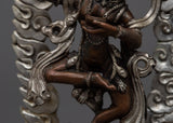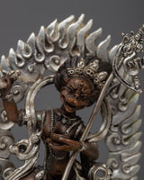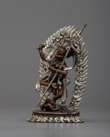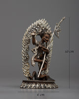 Presenting the 10cm-tall Machine Made Singhamukha Statue, which is finely fashioned on a copper body with a sophisticated silver coating. With minute details that emphasize its celestial presence, this statue perfectly embodies Singhamukha, a respected deity that represents wisdom and protection.