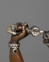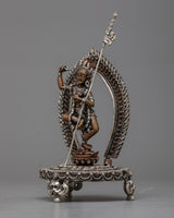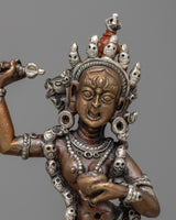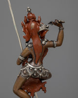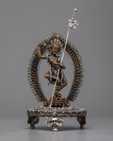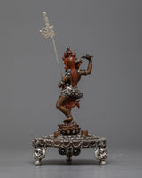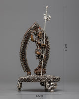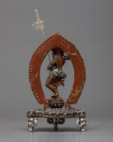 The 21-cm-tall Machinemade Dorje Phagmo Statue is a representation of compassion and knowledge. With its dazzling silver plating and oxidized copper construction, it radiates a sense of celestial beauty and dynamism.