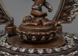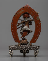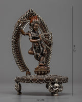 The 17-cm-tall Machinemade Kurukulla Statue depicts the goddess Kurukulla in her energetic and commanding appearance. With its elegant silver plating and exquisite craftsmanship on a copper body, this statue radiates grace and strength.