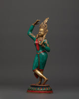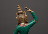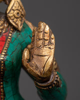 This magnificent 34-cm-tall turquoise brass statue of Maya Devi recognizes the divine feminine as the mother of the historical Buddha Siddhartha Gautama. This sculpture is a stunning representation of motherhood, purity, and spiritual destiny, depicted in the elegant position connected with the birth of Buddha beneath the sal tree. A potent focal point for any Buddhist altar or sacred display, Maya Devi's form and gesture capture the holy moment of Siddhartha's birthplace.