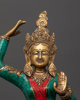 Maya Devi brass statue with Turquoise | Sacred Feminine Art