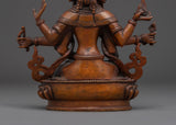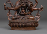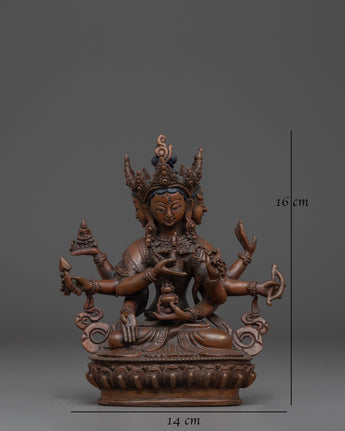 The Oxidized Copper Namgyalma Statue is a powerful spiritual piece that depicts the deity Namgyalma, who is known for her ability to purify negative energy, remove obstacles, and protect practitioners from harm. This painstakingly handmade oxidized copper statue is intended to provide purification, protection, and spiritual transformation to your surroundings. It stands 16cm tall, 14cm wide, and weighs 1.06kg, making it an enticing focus point for meditation rooms, altars, and holy settings.