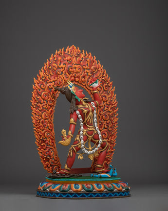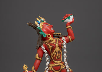 This statue perfectly captures Vajrayogini's role in tantric practices, assisting practitioners in transcending ego, duality, and attachments to achieve higher levels of awareness. Display it as a strong spiritual centerpiece, or use it as an altarpiece for meditation and prayer.