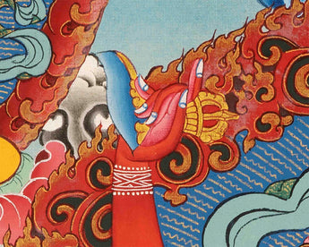 -Rotate thangkas between display and storage on a regular basis, two to four times a year, to reduce the amount of exposure to light. Keep away from sunlight and humidity.
