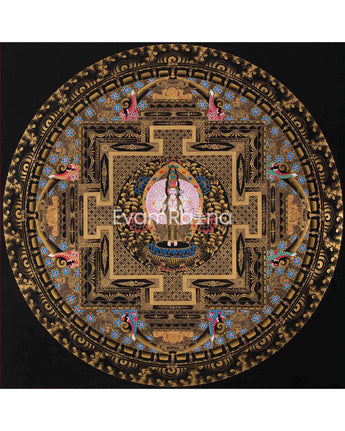 Mandala is a tool for meditation or contemplative object used to illustrate various aspects of Buddha’s teachings, meditative instruction, or the cosmological representation of the pure microcosm (pure mandala) of the deity.