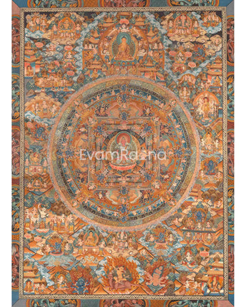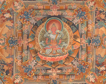 Amitayus Buddha Mandala Thangka | Original Hand Painted Tibetan Canvas Art |