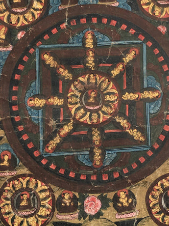 This Thangka has been a part of our collection for more than 30 years. It was hidden away for a number of years. We only recently made the decision to display our collection of old thangkas. When we presented these exquisite thangkas, we were delighted to see their caliber and depth, and we made the decision to put them online as a resource for everyone. We really hope that the beauty of these old Thangka paintings fills your hearts with a great feeling of joy.