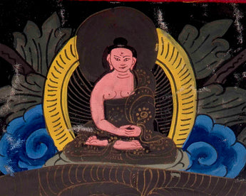 Our thangka is a handpainted Tibetan art done using traditional methods. It is a unique piece created using genuine 24K gold and natural stone colors.