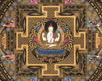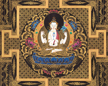 Original Hand-Painted Chengrezig Mandala | Fine Quality Avalokitesvara Thangka Painting