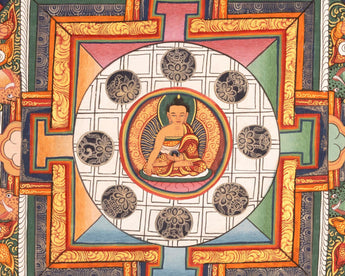 The Shakyamuni Buddha Mandala is a sacred representation of the teachings and spiritual essence of Buddha Shakyamuni, the historical Buddha who founded Buddhism. At its core, the mandala serves as a visual tool for meditation, inviting practitioners to contemplate the profound wisdom and compassion embodied by Shakyamuni Buddha. Within the mandala, intricate geometric patterns and symbolic imagery illustrate various aspects of Buddha's teachings, guiding individuals on their spiritual journey toward enlightenment.