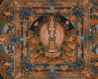 Tibetan Mandala With 1000 Armed Avalokiteshvara | Traditional Wall Hanging Buddhist Painting