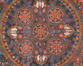 The Mandala represents a symbolic Geometric Diagram in Tantric Buddhism, which visualizes the metaphysical interconnection between microcosm and the universe. Mandalas embody a vast store of Spiritual Energy.