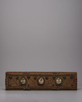 Each stone in this prayer book represents spiritual value, adding to its visual appeal and spiritual potency. The copper body and silver plating not only give the book a regal appearance, but also reflect its status as a sacred object in Tibetan Buddhism. The Tibetan Prayer Book, whether used for personal prayer, meditation, or as a valued item, inspires reverence and spiritual connection, creating times of deep thought and inner serenity.