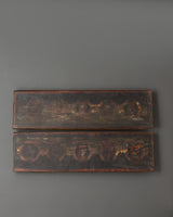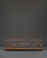 The intricate silverwork delicately frames each of the Five Dhyani Buddhas, showcasing exceptional craftsmanship and adding an air of refined elegance. Vibrant turquoise and coral inlays enhance the piece with traditional Himalayan colors, emphasizing its cultural and spiritual heritage. More than just a protective cover, this prayer book case is a sacred object crafted to uplift rituals, deepen meditative practice, and serve as a stunning display. It is a powerful focal point in monasteries, shrines, or private collections. Embrace this exquisite piece to honor Buddhist tradition while enhancing the spiritual atmosphere of your sacred space.