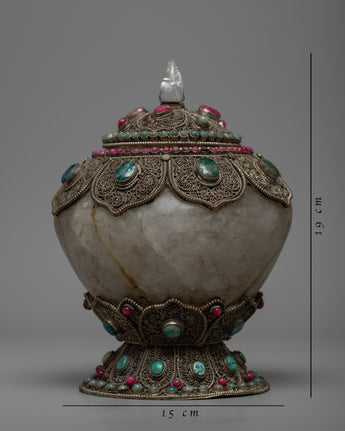 Crystal Bowl | Old Tibetan Filigree Carving Gemstones Inlay | Home Decors