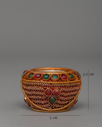 Golpa Ritual Offering Bowl | Handcrafted Tibetan Copper Alms Bowl with Filigree Work