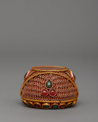 Handcrafted Golpa with Filigree Work | Tibetan Copper Alms Bowl