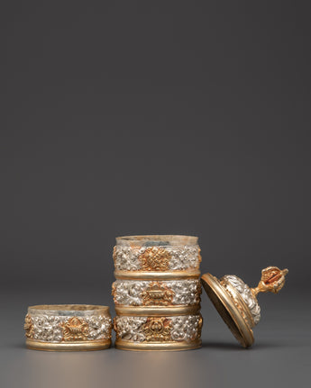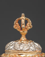 Handcrafted Tibetan Buddhist Rice Pot | Ornate Offering Pot for Altar, and Spiritual Practices