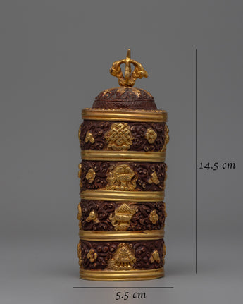 Introducing our stunning Handmade Rice Pot, an stunning object that perfectly combines old-world artistry with exquisite design. This stunning pot comes with a height of 14.5 cm, a width of 5.5 cm, and a weight on 0.180 kg. It is made with  copper body which is plated in gold. Although every pot is meticulously made through hand, an exclusive and superior finish that exhibits the maker's commitment and expertise is secured.