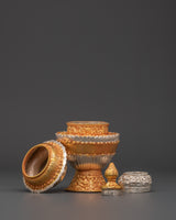 Himalayan Buddhist Ritual Pot | Altar Bowl with Lid for Puja
