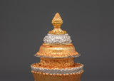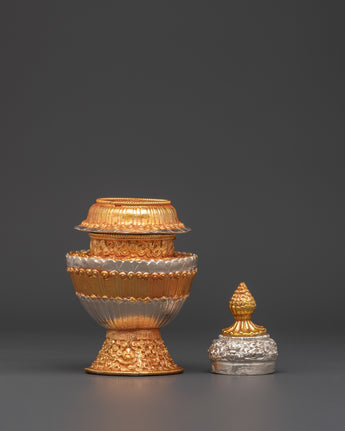 Himalayan Buddhist Ritual Pot | Offering Vessel with Electroplated Gold and Silver