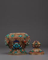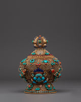 Himalayan Dhupur Rice Pot | Copper Rice Pot with Turquoise Coral Lapis Inlay Design