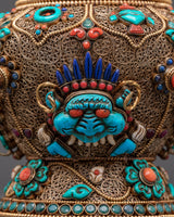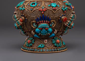 Enhance your sacred space with the exquisite Himalayan Dhupur Rice Pot Set, a traditional ritual vessel deeply rooted in Buddhist ceremonial practices. These Dhupur pots are revered spiritual artifacts that represent abundance, purity, and devotion, in addition to serving as sacred containers for rice or offering symbols. These vessels, traditionally placed on Buddhist altars or shrine spaces, are used to make offerings to deities and enlightened beings as a sign of respect and to accumulate merit.