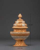 This Himalayan Handcrafted Rice Pot, created with love and ability, is both a cultural treasure and an art piece for your home or altar. Its spiritual resonance, paired with its intricate craftsmanship, makes it an exceptional addition to any collection. Whether employed in prayer rituals or as a decorative accent, it exudes spiritual depth and connects people to Himalayan culture.