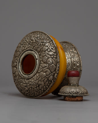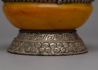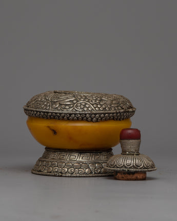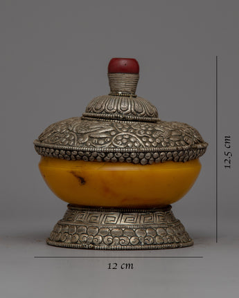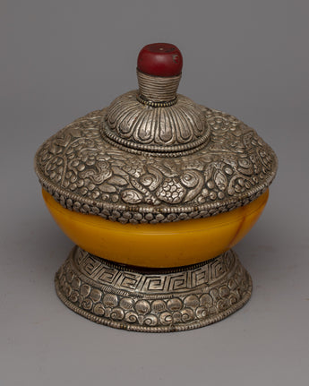 Silver Dhupur Rice Pot | Tibetan Food Offering with Plastic Amber