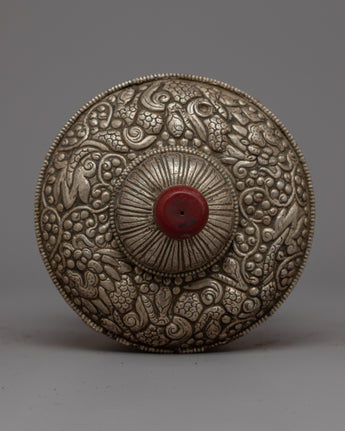 This rice pot was meticulously handcrafted and serves as both an offering tool and a representation of the rich Tibetan heritage and culture. The silver cover, which is embellished with intricate patterns and designs, displays the craftsmanship and skill of the artisans who make these items. It's the ideal addition to your kitchen, giving your cooking rituals a dash of tradition and sophistication.