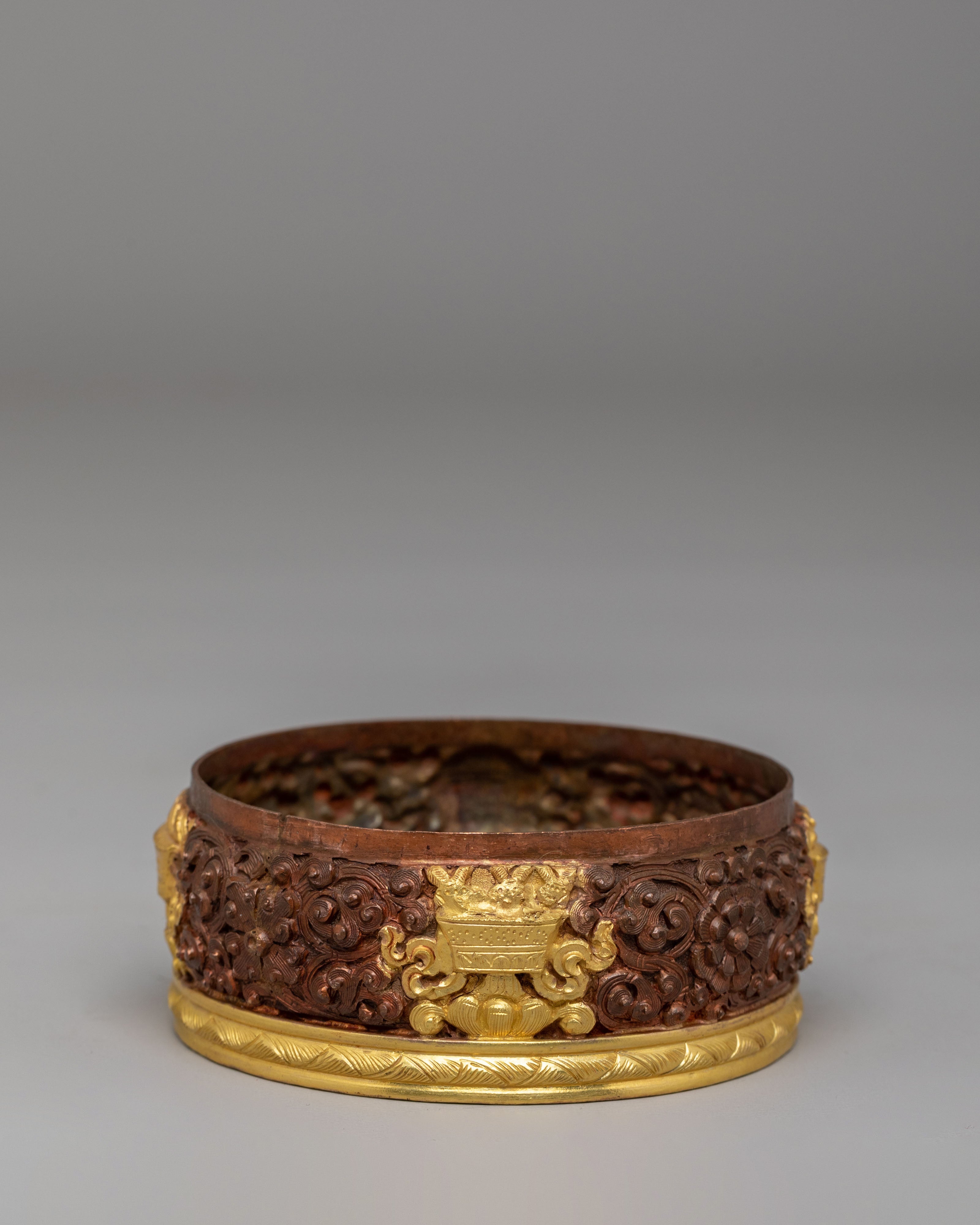 Placing this Handcrafted Dhupur Rice Pot, also known as a Tibetan offering pot, ritual rice container, or Buddhist altar vessel, in your sacred space supports ceremonial practices and devotional offerings. It serves as a meaningful piece of Buddhist ritual decor, ideal for practitioners, collectors, and those seeking authentic spiritual art connected to tradition and practice.