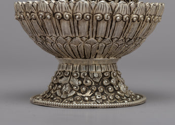 Introducing the Dhupur Rice Pot, a masterpiece of handcrafted artistry on a copper body with a radiant silver-plated finish. Standing at a height of 12 cm and weighing 0.33 kg, this pot is a perfect blend of functionality and aesthetics. Its intricate design and elegant contours add a touch of sophistication to any kitchen or dining space. Ideal for storing and serving rice or other grains, this rice pot is not just a culinary essential but also a delightful piece of decor. Elevate your dining experience with the charm and beauty of this Dhupur Rice Pot, a testament to the timeless craftsmanship of skilled artisans.