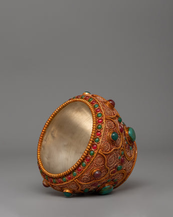 Tibetan Golpa Bowl with Coral - Sacred Buddhist Offering Decor