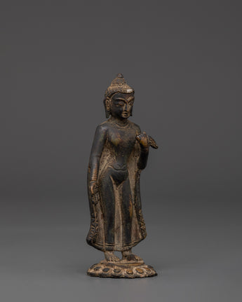 Handmade Dipankara Buddha Figurine | Copper Statue with Antique Finish