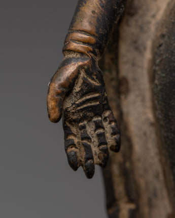 The Handmade Dipankara Buddha Figurine is ideal for people interested in Buddhist philosophy or looking for a stunning decorative piece. It adds spiritual presence to any atmosphere. Its copper construction and antique finish provide a warm, inviting ambiance, making it ideal for adding to your meditation room or collecting unique spiritual art. This figurine is a wonderful reminder of enlightenment, helping those who stare at it to a greater understanding of calm and wisdom.