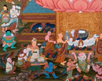 As requested for consecrations/blessings, we can take thangka to Monasteries/Rinpoches from nearby Boudha Stupa. We kindly ask you to offer $50 for the monasteries for blessings/consecration service.
