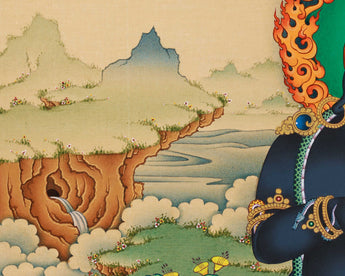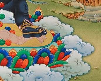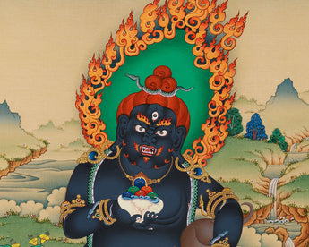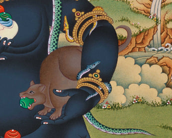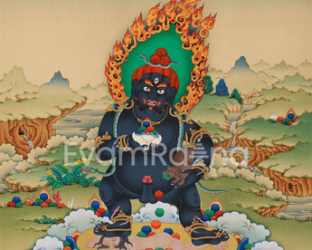Unlock the abundant blessings of Black Dzambhala with our exquisite Thangka print.