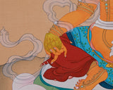 Immerse yourself in the captivating presence of the Buddha of Wealth, Dzambhala, a revered wealth deity in Vajrayana Buddhism. He is believed to be a manifestation of Chenrezig, the Bodhisattva of Compassion. The thangka, a sacred object of reverence, teaches us to overcome spiritual poverty and cultivate generosity. It showcases profound spiritual intent and artistic refinement, serving as a mesmerizing centerpiece that radiates divine energy.