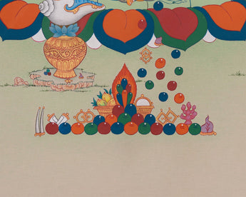 As per your request for consecrations/blessings, we can take the thangka to nearby monasteries or Rinpoches from the Boudha Stupa. We kindly ask that you contribute $50 to the monasteries for these blessing and consecration services.