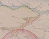 In this thangka, Kubera is depicted with a radiant golden body, a symbol of the incorruptible nature of wealth. He is seated in a relaxed yet authoritative posture—his right hand clutching a citron (jambhara fruit) and his left hand cradling a treasure-emitting mongoose. The Karma Gadri tradition portrays Kubera in a divine realm of swirling clouds and spiritual terrain, underscoring the deity's supreme dominion over abundance and his accessibility to sincere devotees seeking material support and spiritual growth.