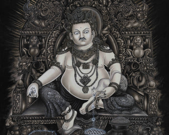 Majestic Kubera, God of Wealth | A Modern Charcoal Thangka Depiction