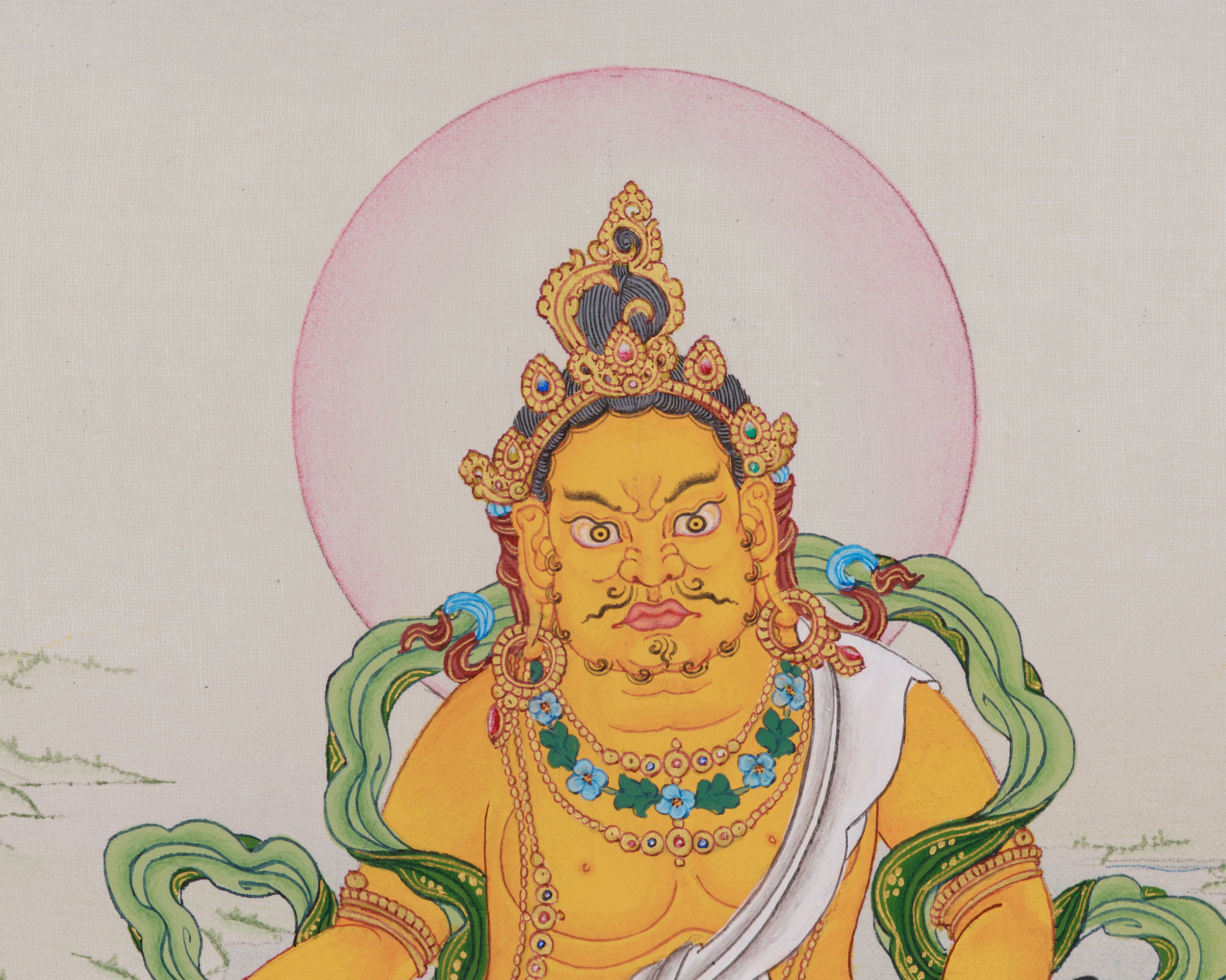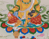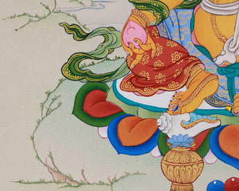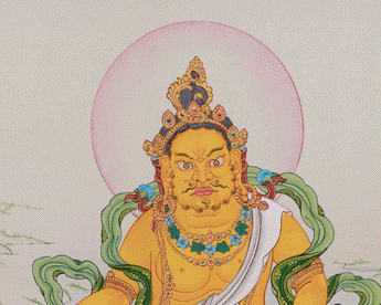 Hand-Painted Thangka of Yellow Jambhala | Divine Abundance and Spiritual Blessings
