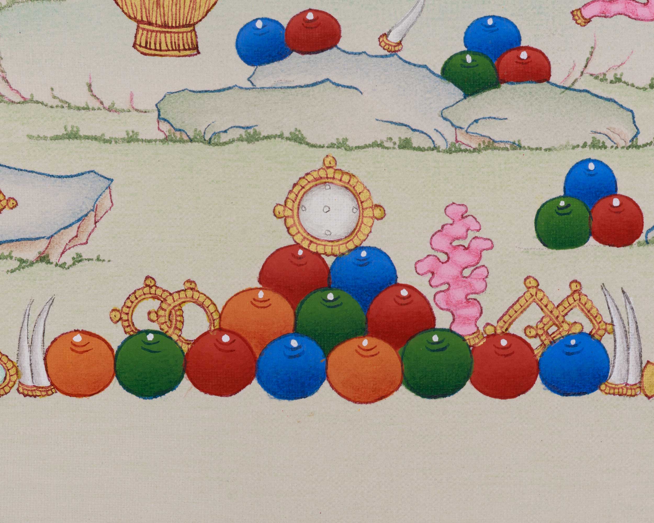 - Regularly inspect your thangka; examine the borders and all attachments.